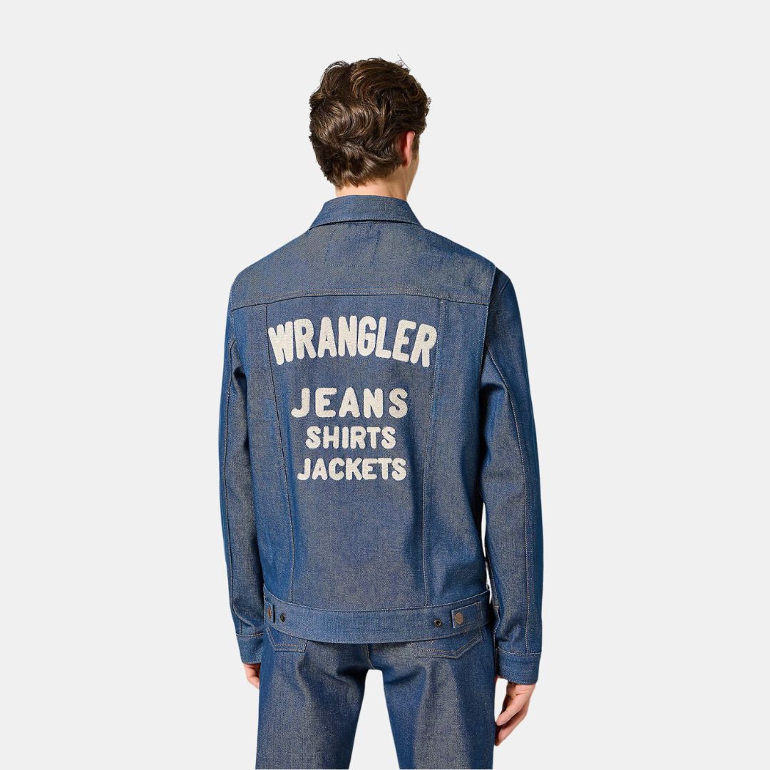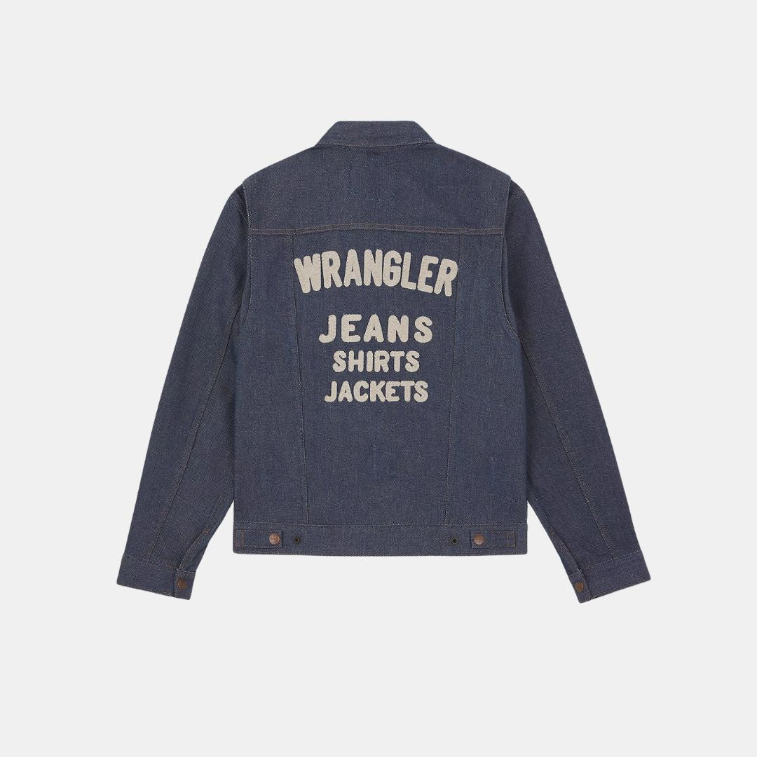• Gráfico «Wrangler, Jeans, Jackets, Shirts» bordado en la espalda.