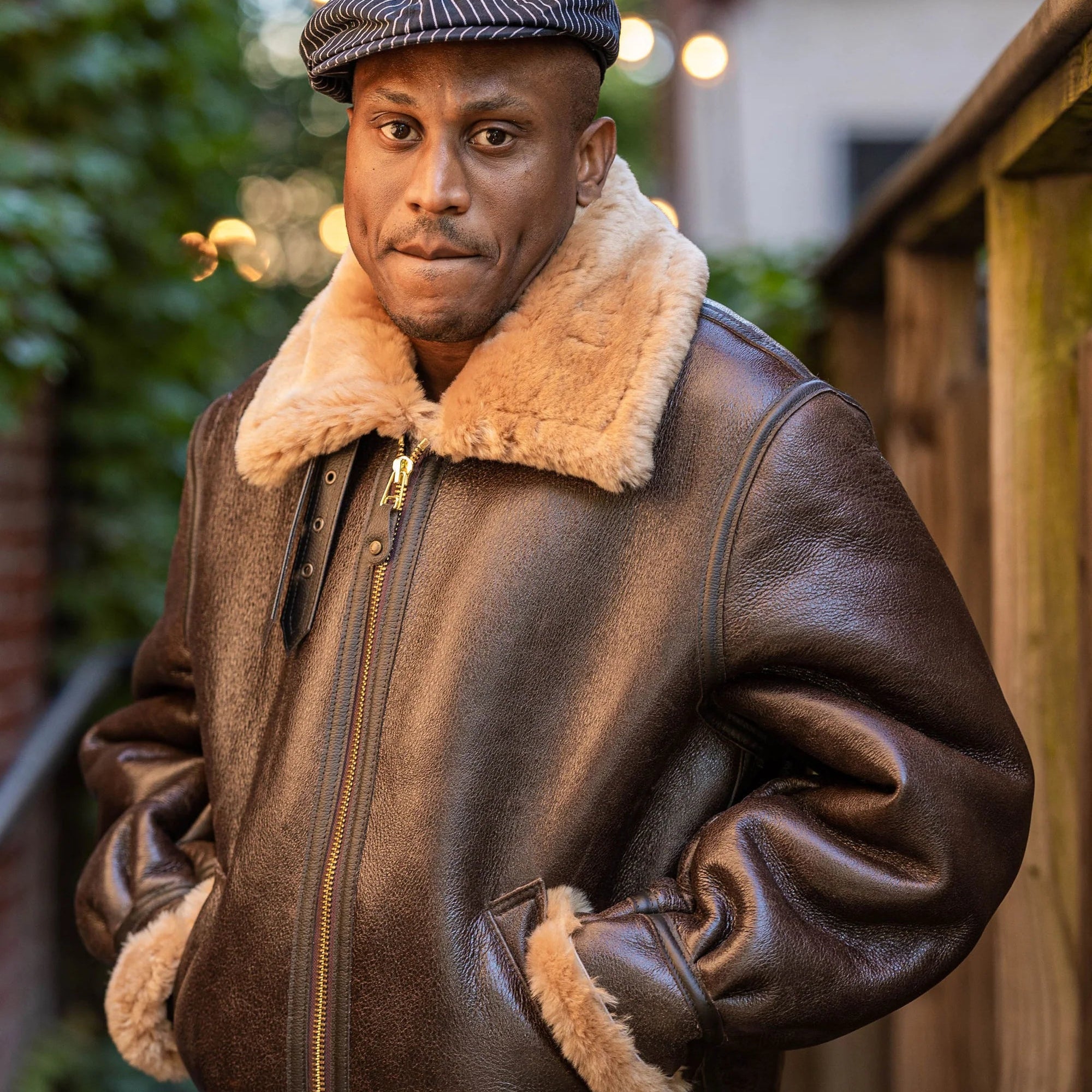 B-3 Bomber Jacket Sheepskin Leather Moka