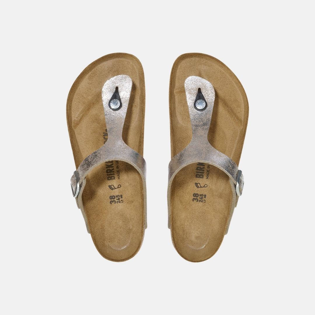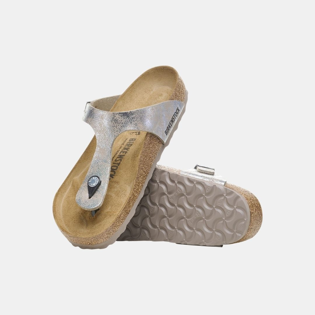 Birkenstock Gizeh Birko Flor Women's SYN Washed Metallic Silver