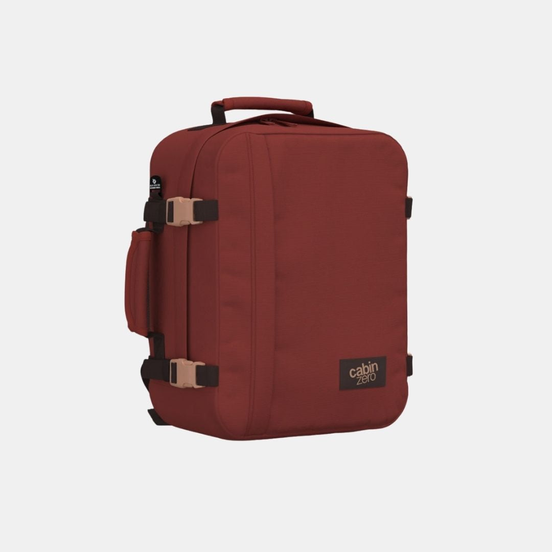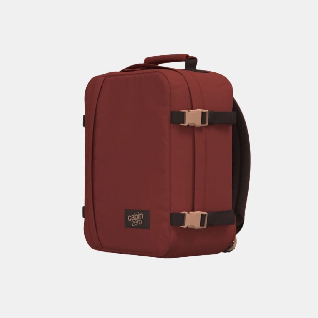 Der Classic CABINZERO in Sangria-Rot ist die originale, unkomplizierte Reisetasche. Für Flugzeuge oder Züge, unter dem Sitz oder auf dem Rücken eines Kamels. Dies ist ein klassischer Rucksack der so viel gereist ist wie Sie, der für Abenteuer gemacht ist, der Teil der Reise ist, kein nachträglicher Einfall.