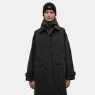 El abrigo Hyden está confeccionado con 54% Poliéster reciclado y 46% Algodón orgánico, con relleno de 100% Poliéster reciclado. El poliéster reciclado reduce el uso de recursos fósiles, emisiones de CO2 y consumo de agua y energía, al reutilizar residuos plásticos como botellas PET, manteniendo las propiedades del poliéster virgen. Prenda exterior: