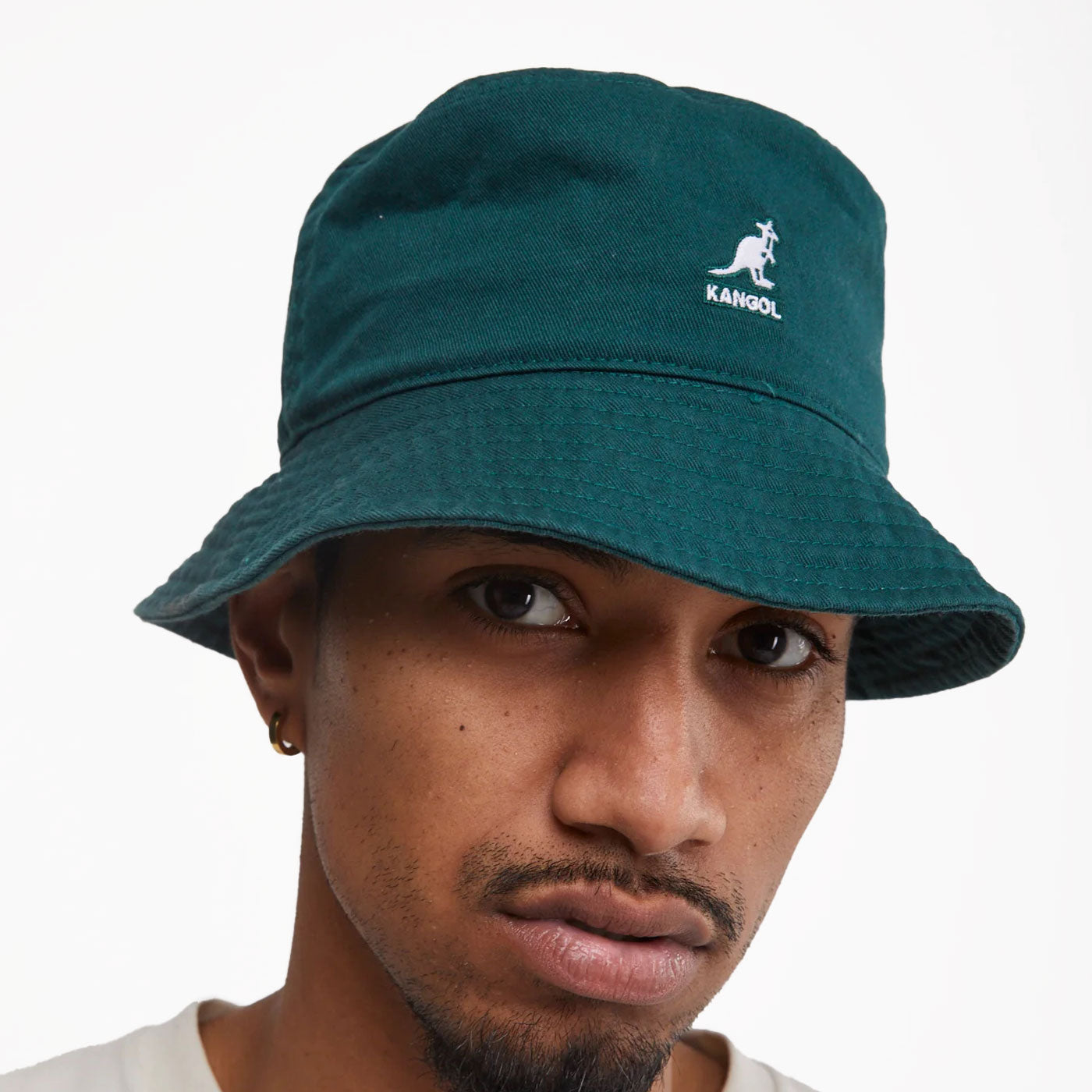 Der gewaschene Fischerhut ist das perfekte Garderobenaccessoire für einen klaren, zeitlosen Look für alle Jahreszeiten. Es verfügt über ein leichtes Material aus 100 % Baumwolle, eine flache Krone, eine 2 1/4-Zoll-Krempe und eine Kreuzschraffur auf dem gestickten Känguru-Logo, die den ikonischen Stil von Kangol vervollständigt.