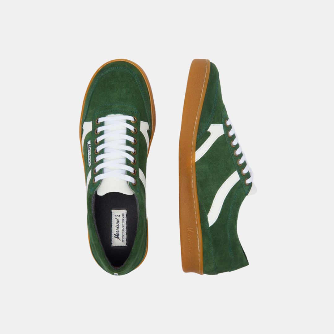 Hier beginnt dein Outfit. Entworfen aus moosgrünem Veloursleder mit Details aus weißem PU und einer Sohle in Speckfarbe. Kombiniert Stil und Komfort.