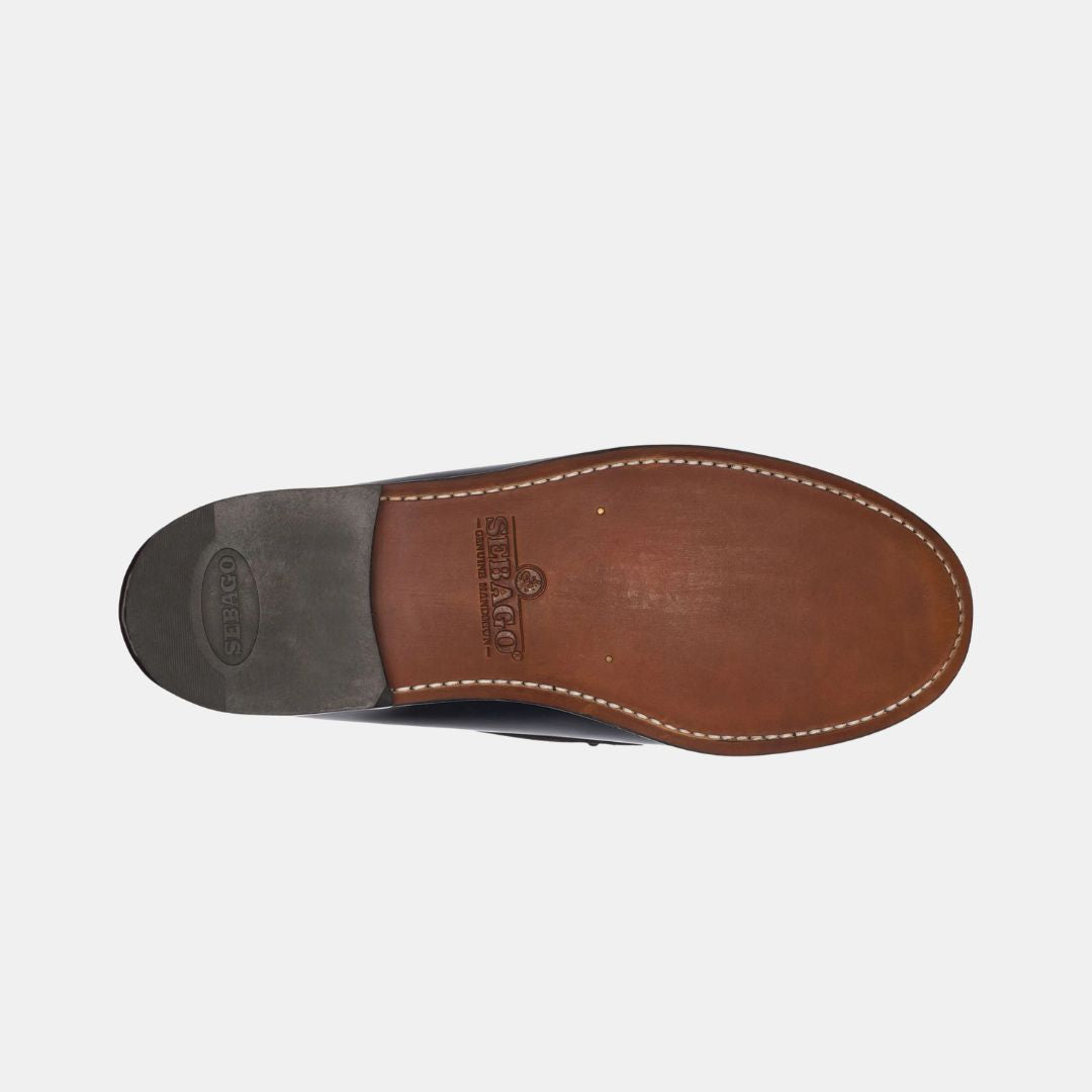 Diese Beefroll-Mokassins für alle vier Jahreszeiten sind aus weichem, korrigiertem Leder gefertigt, um der Zeit standzuhalten, und von Hand mit bester Handwerkskunst genäht. Sie haben ein ungefüttertes Obermaterial, eine Lederfußbett-Fütterung und wasserdichte, flexible und langlebige Sohlen aus natürlichem Leder mit einem geformten Gummihacken. Die Mokassins "Dan" sind eine Hommage an die Leidenschaft der Gründer von Sebago.