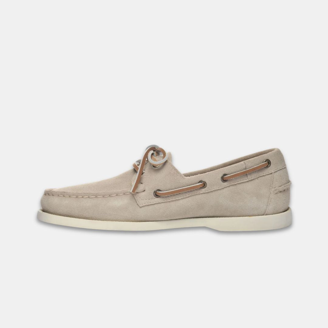 Diese langlebigen Bootsschuhe, die als das perfekte nautische Schuhwerk entworfen wurden, bestehen aus einem einzigen Stück weichem, aber dickerem und widerstandsfähigem Wildleder ohne Futter und sind von Hand mit bester Handwerkskunst genäht: Sie kommen mit Lederfutter, einem 360°-Schnürsystem aus rohem Leder und rutschfesten Gummisohlen, die keine Spuren hinterlassen, um einen stabilen Halt bei allen Wetterbedingungen zu bieten. Die Mokassins "Portland" tragen in ihrem DNA eine angeborene Zuneigung und Verbindung zur Stadt Portland, einem der größten Seehäfen Neuenglands, der auch einen weltberühmten Yachtclub beherbergt.