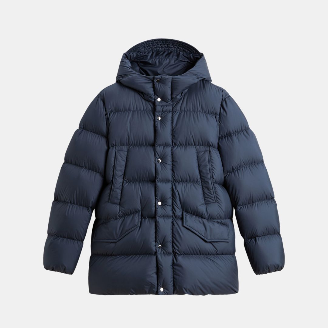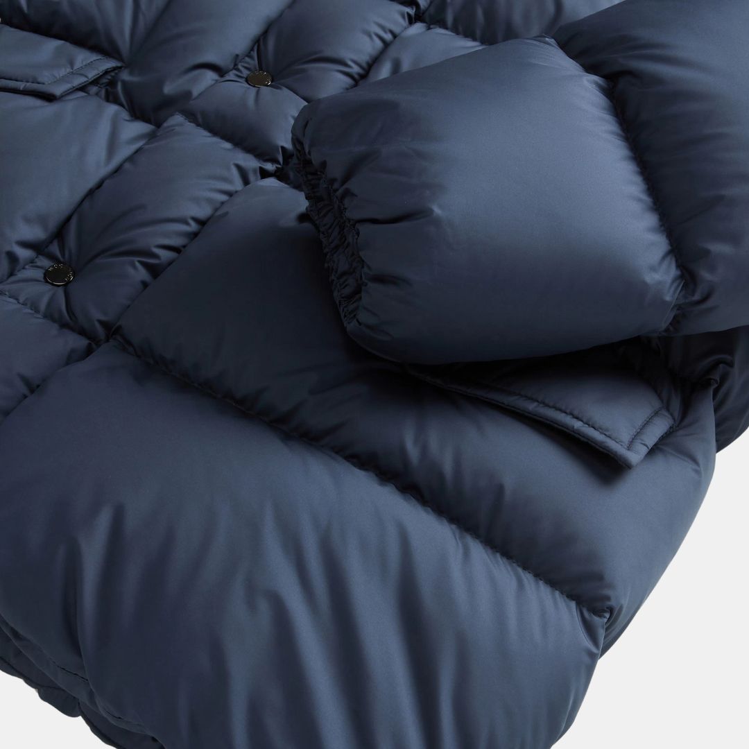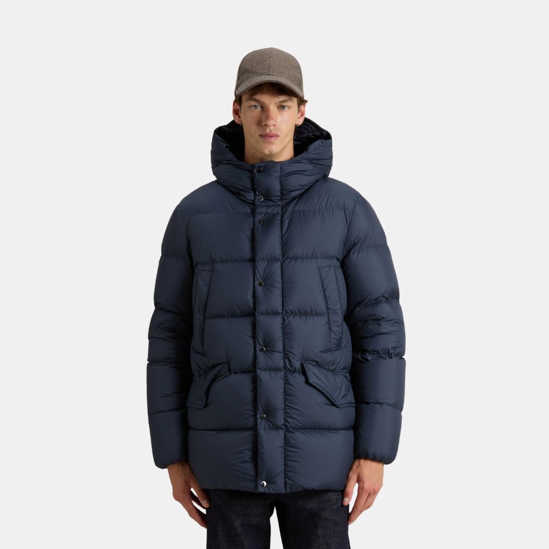 Esta parka de la Cloud Series, nuestra cápsula de prendas de abrigo cálidas pero ligeras como una nube, es un imprescindible para afrontar el invierno con estilo y funcionalidad. Está confeccionada en suave microfibra de efecto seda, un tejido hidrófugo y resistente al viento. El relleno de plumón de pato garantiza una calidez excepcional sin añadir demasiado peso a la prenda. El modelo, pensado para ofrecer protección y confort, dispone de una capucha con cuello alto integrado y visera, ajustable gracias al cordón de la parte trasera. El cierre frontal con cremallera bidireccional se oculta con una solapa con botones a presión, mientras que dos botones adicionales en el cuello garantizan una mayor resistencia al frío. El diseño presenta una serie de prácticos bolsillos: dos bolsillos de ribete y dos bolsillos con solapa, todos con botones a presión ocultos, así como dos prácticos bolsillos interiores, uno de ellos con cremallera. El ajuste se puede personalizar con el cordón ajustable interno en el bajo. Por último, el logotipo estampado en la capucha y la etiqueta lateral completan la prenda.