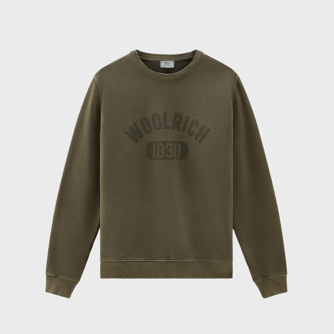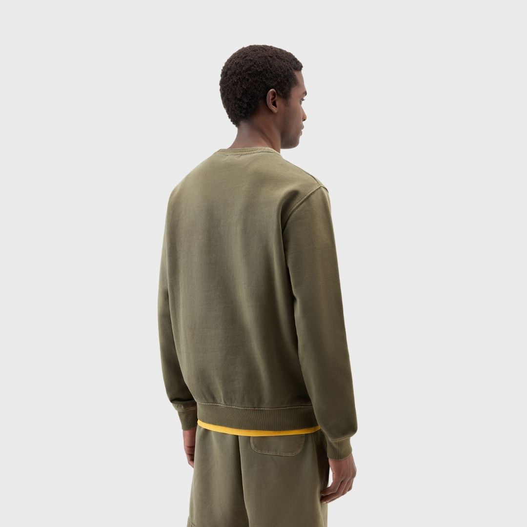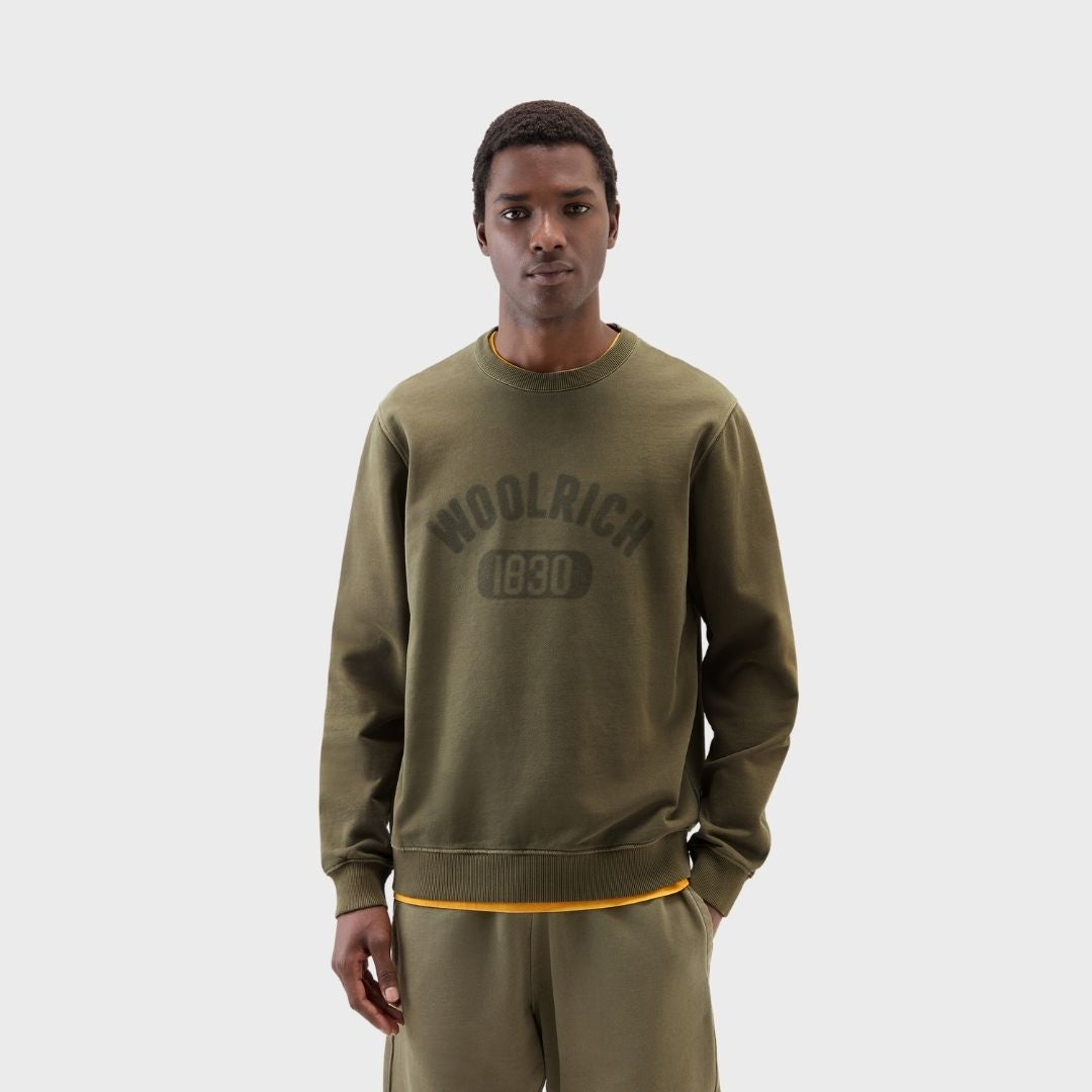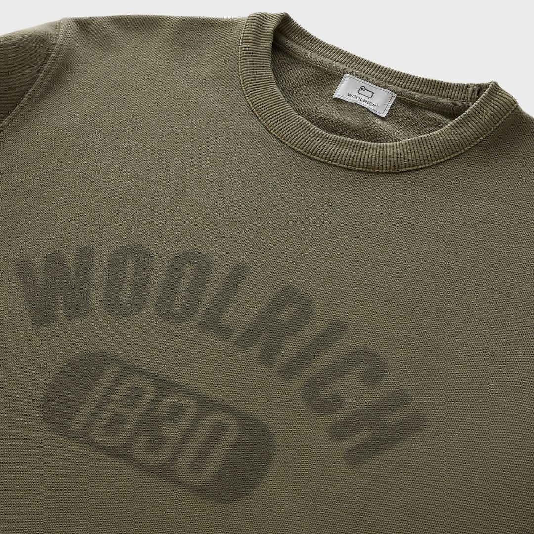 Woolrich Garment Dyed Logo Crewneck Lake Olive