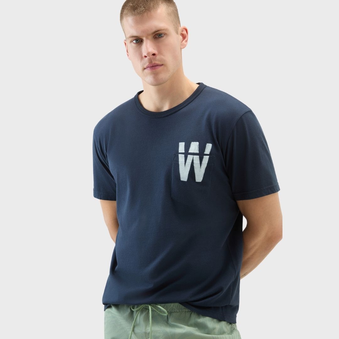 Ein lässiges T-Shirt mit starker grafischer Persönlichkeit, das zu einer Cargohose oder unter einer Strickjacke getragen werden kann. Das Modell besteht aus reinem Bio-Baumwoll-Jersey-Stoff und hat eine vielseitige Linie mit Rundhalsausschnitt und Brusttasche. Das besondere Element ist der Maxi-Druck auf Wasserbasis auf der Rückseite mit einem leichten Strich und Aquarelleffekt.