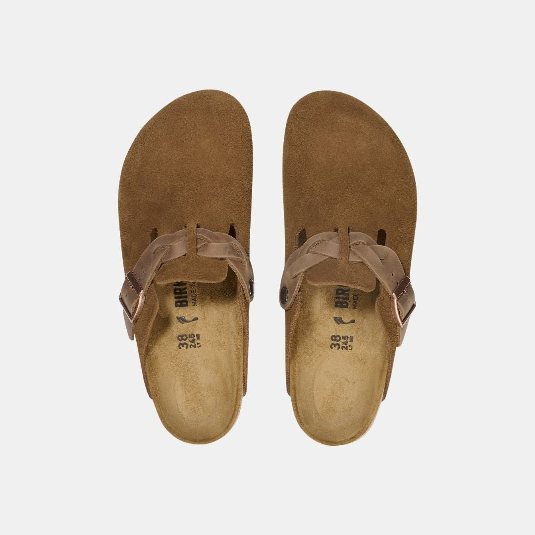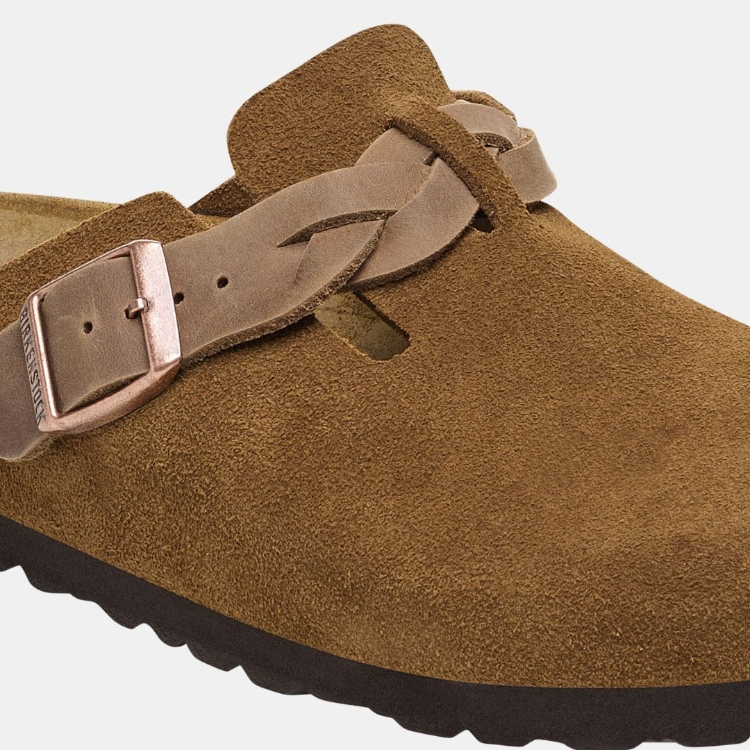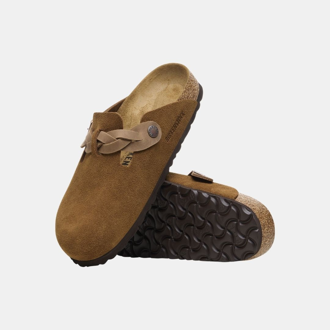 Das Modell BIRKENSTOCK Boston ist ein echter Klassiker, der das ganze Jahr über problemlos getragen werden kann. Mit seinem raffinierten Design, das sich individuell anpassen lässt, genießt der Boston Clog längst Legendenstatus. Dieses Modell verfügt über ein ganz besonderes Detail: Die Träger haben einen geflochtenen Aufdruck, der perfekt zur modernen Bohème-Ästhetik passt. Das Obermaterial besteht aus besonders weichem Wildleder, das sich wie angegossen an den Fuß anpasst.