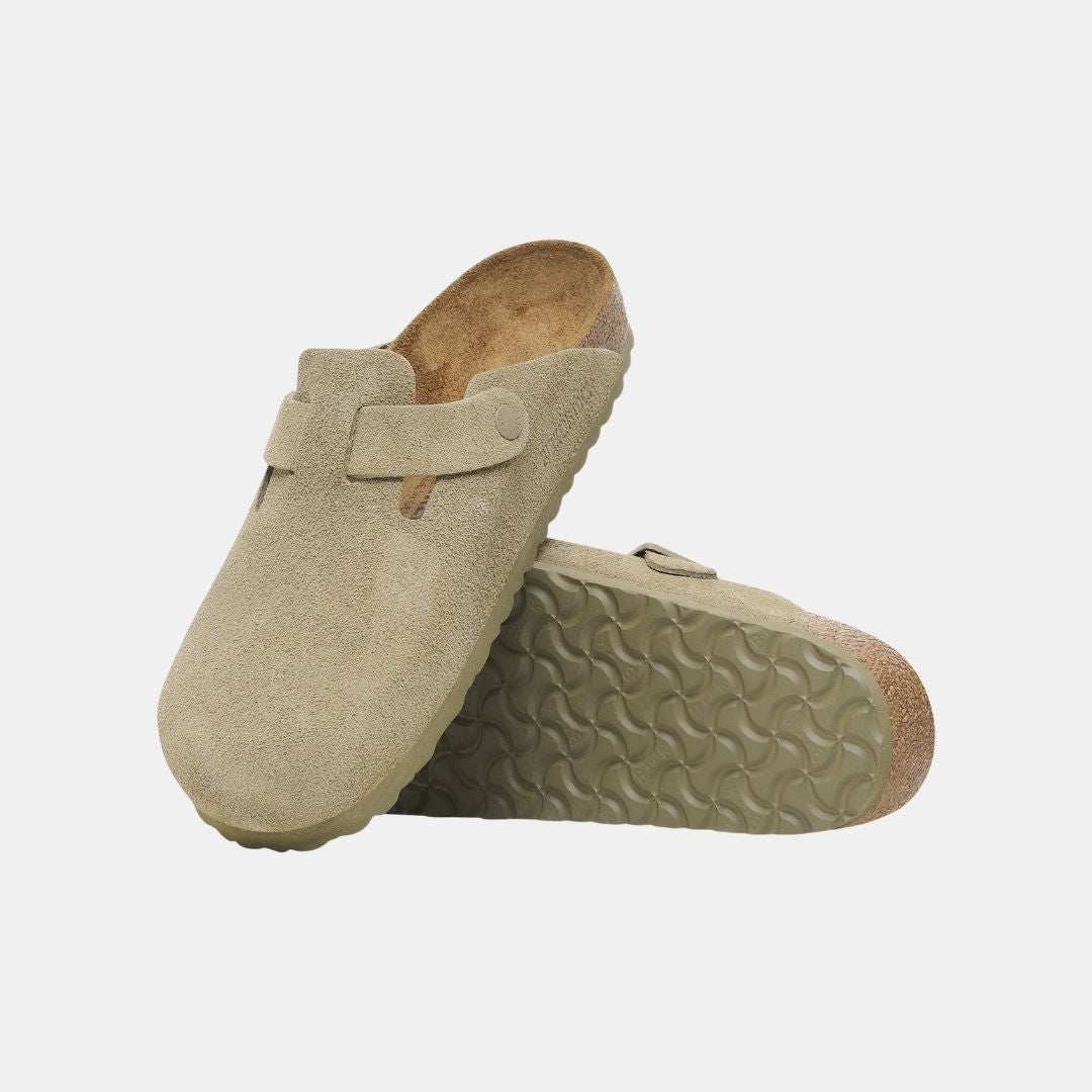 Birkenstock Boston Suede Leather Narrow Fit Women's Faded Khaki