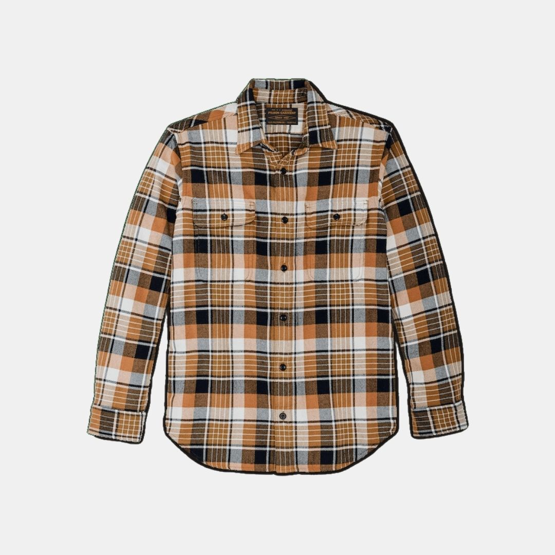 Das Vintage-Flanell-Arbeitshemd ist seit seiner Einführung im Jahr 2015 ein Favorit sowohl der Filson-Mitarbeiter als auch der Kunden. Es besteht aus dickem, atmungsaktivem Baumwollflanell und ist ideal für kaltes Wetter. Der Stoff ist stark gebürstet und sorgt für außergewöhnliche Weichheit und Wärmespeicherung. Doppelte Schulterfalten an der hinteren Passe sorgen für uneingeschränkte Bewegungsfreiheit beim Arbeiten über Kopf, beim Werfen einer Fliegenrute oder beim Schultertragen einer Schrotflinte. Für den Frontverschluss und die verstellbaren Manschetten werden praktisch unzerbrechliche Knöpfe verwendet, um eine langfristige Haltbarkeit zu gewährleisten.