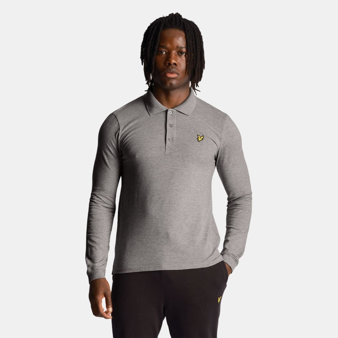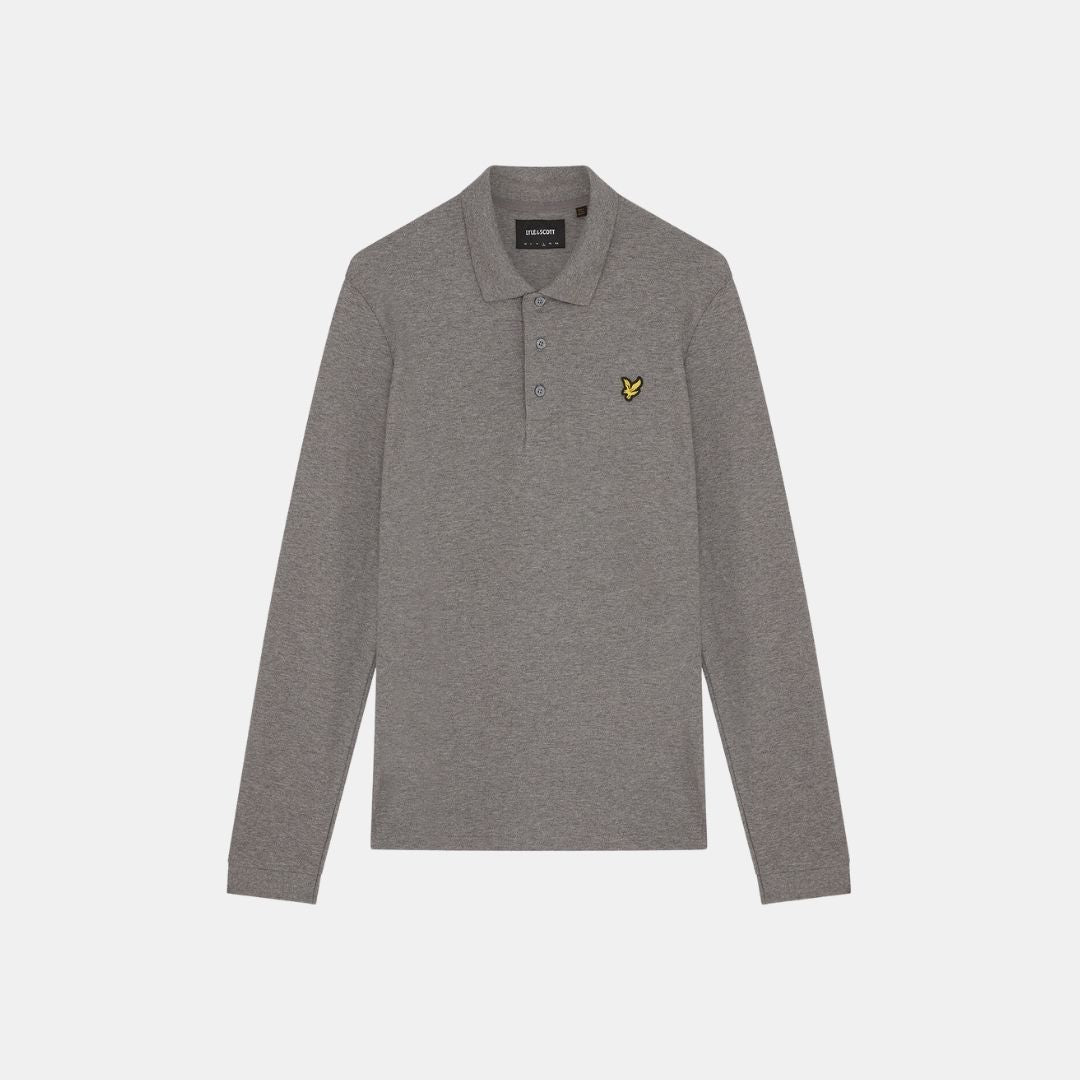 Lyle & Scott Langarm-Poloshirt Mittelgrau meliert