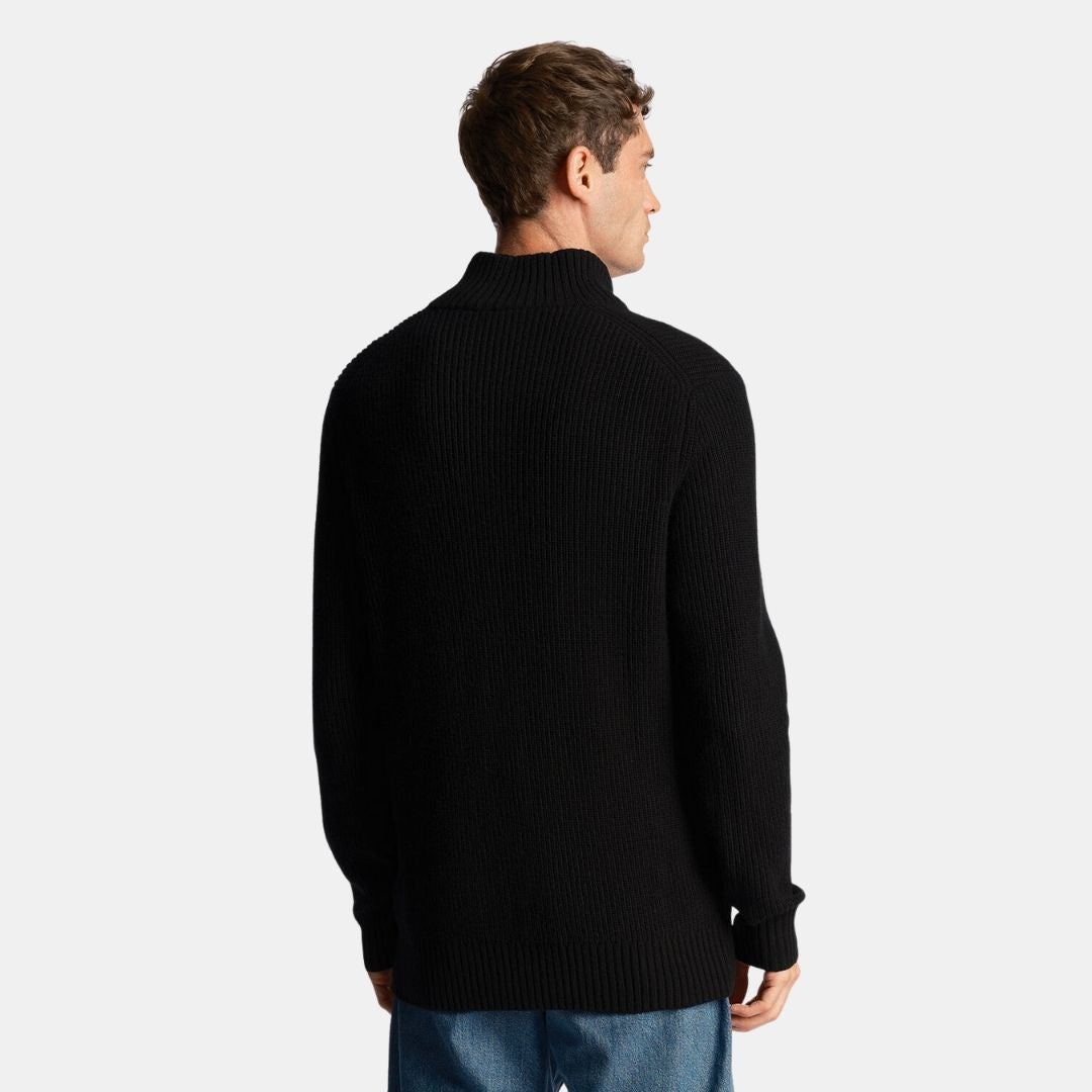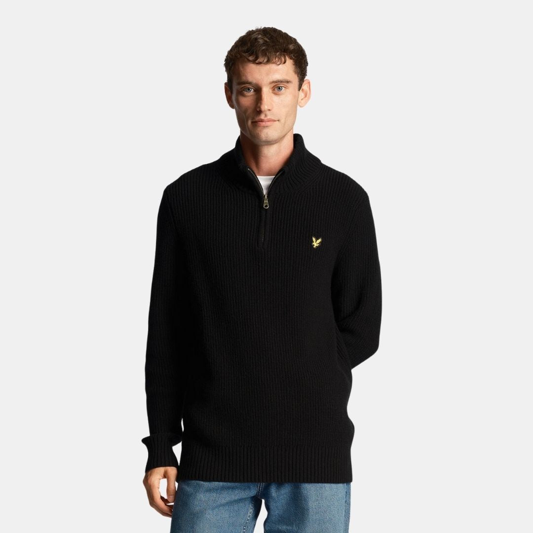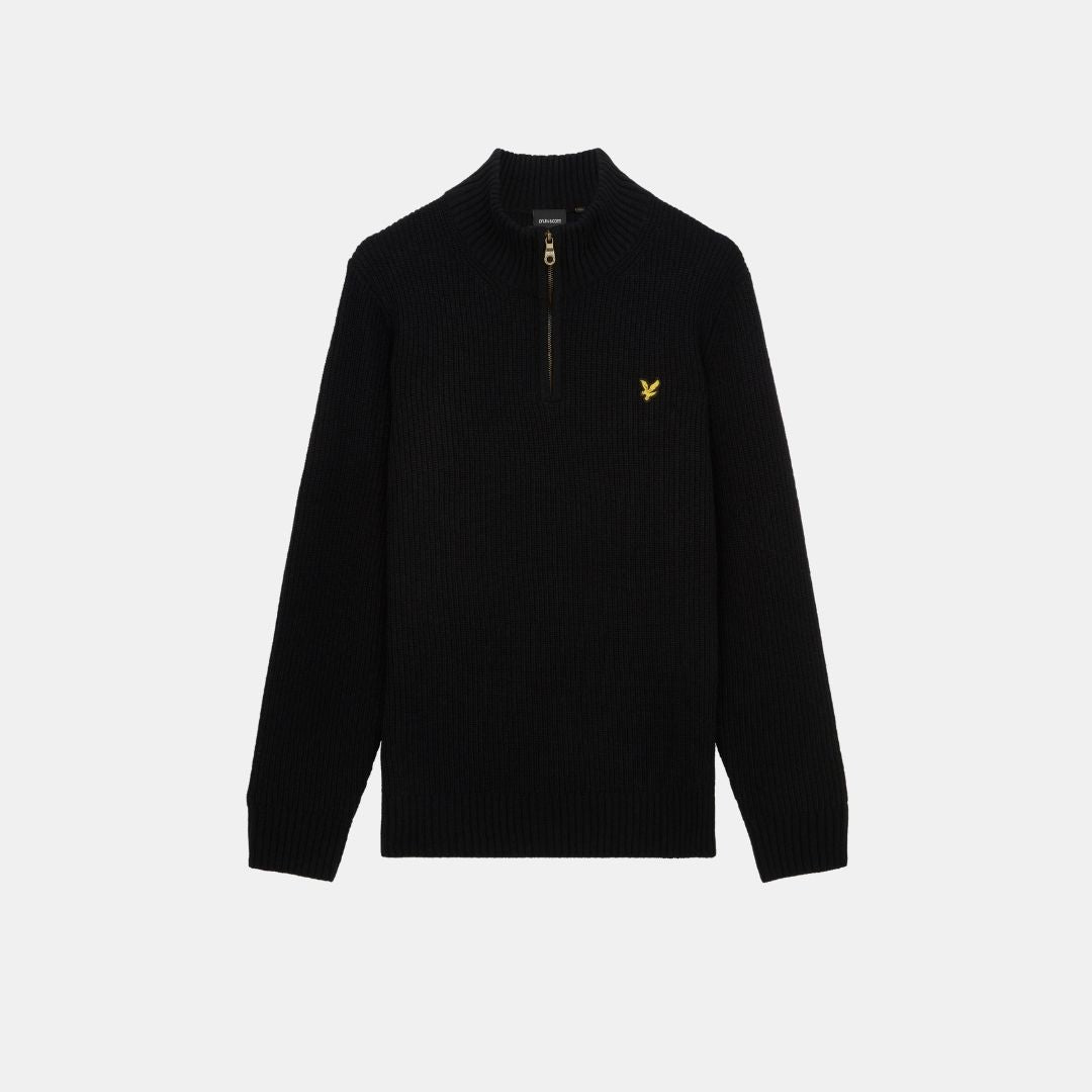 Lyle & Scott gerippter Pullover mit Viertelreißverschluss, tiefschwarz