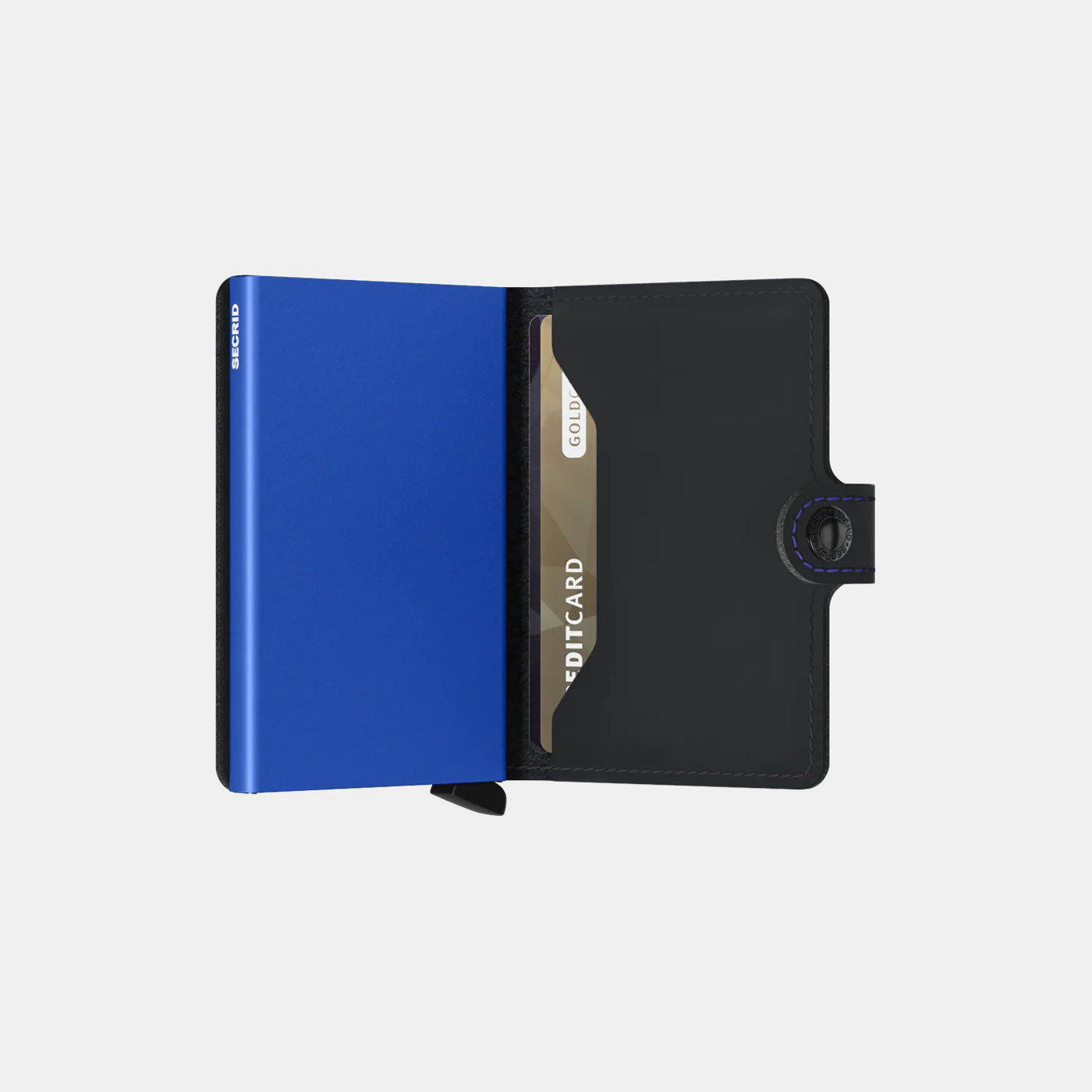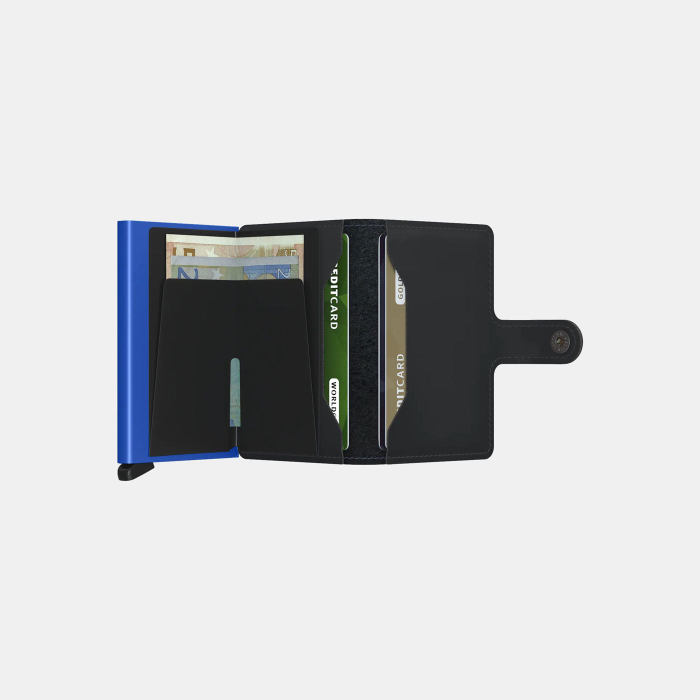 Klein, aber mit überraschend großem Fassungsvermögen: die Miniwallet erfüllt alle Bedürfnisse. Die Außenseite kann Geldscheine, Tickets und Karten aufnehmen, während der Aluminium-Cardprotector das Herausnehmen der Karten mit einer einfachen Bewegung ermöglicht, wodurch sie sich nicht verbiegen, brechen oder unbemerkt ausgelesen werden.