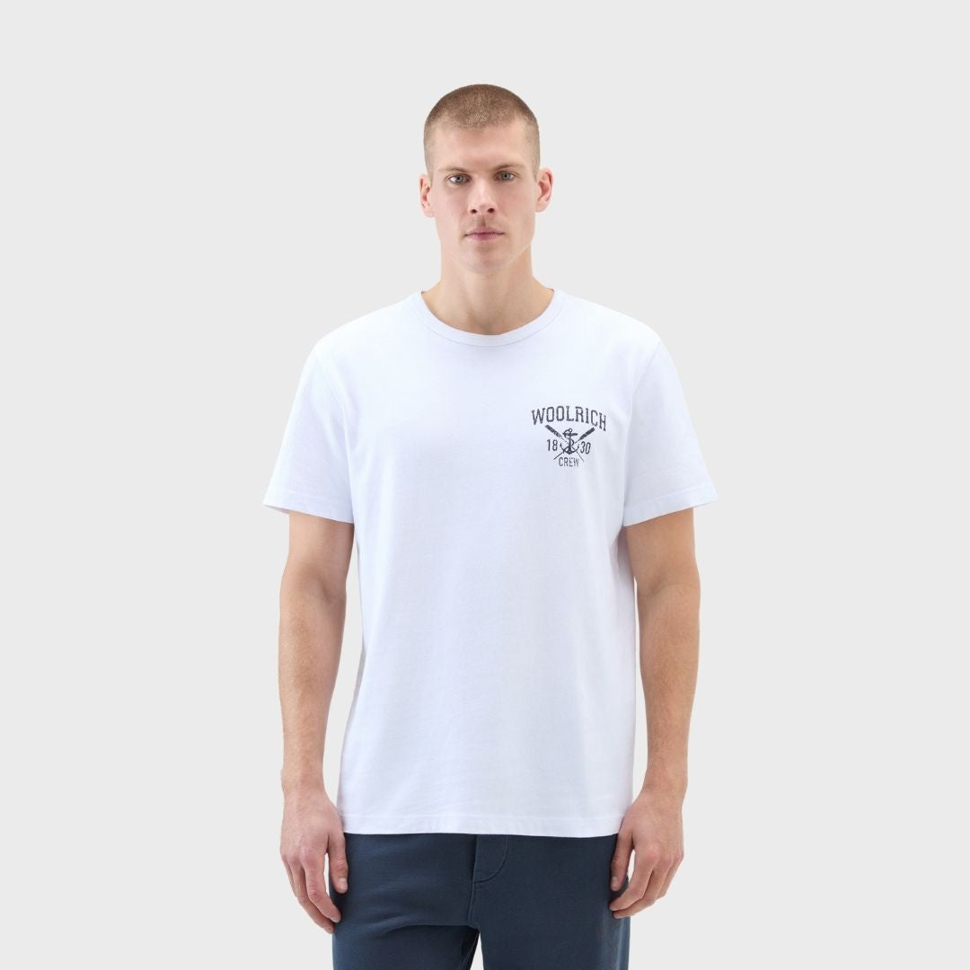 - Woolrich 1830 Crew-Aufdruck auf der Brust.