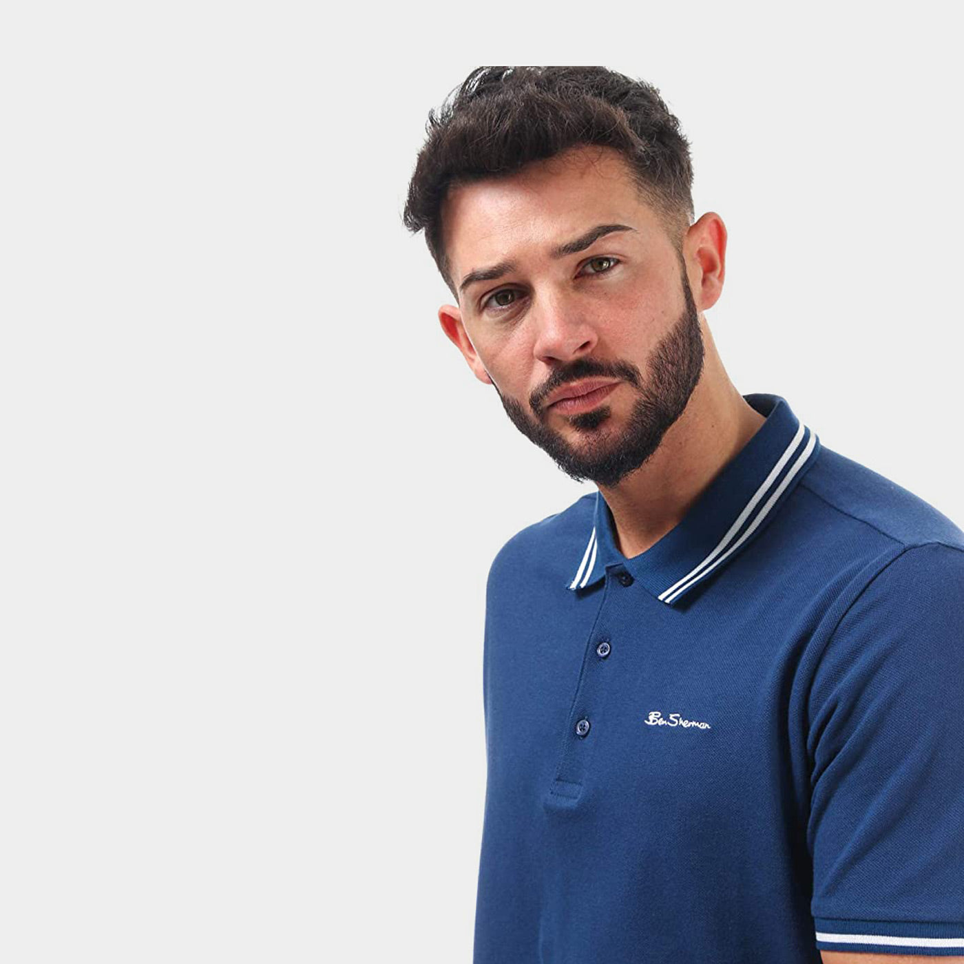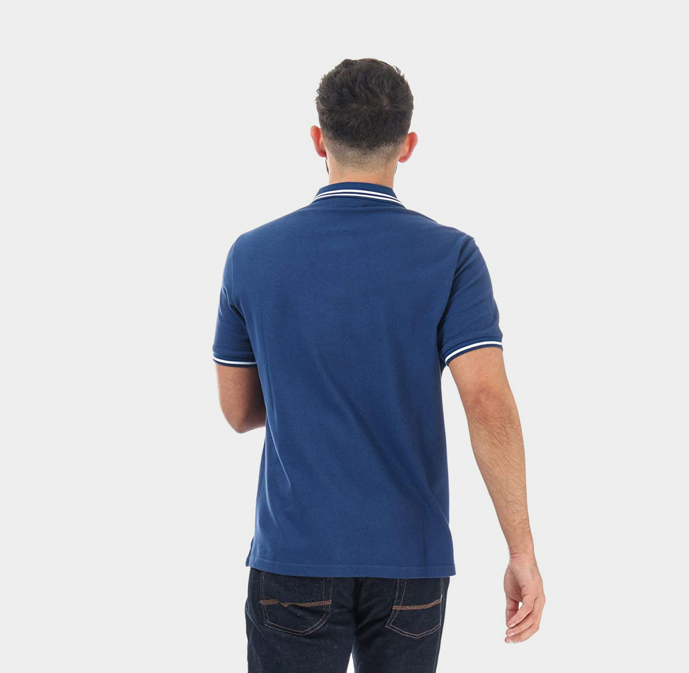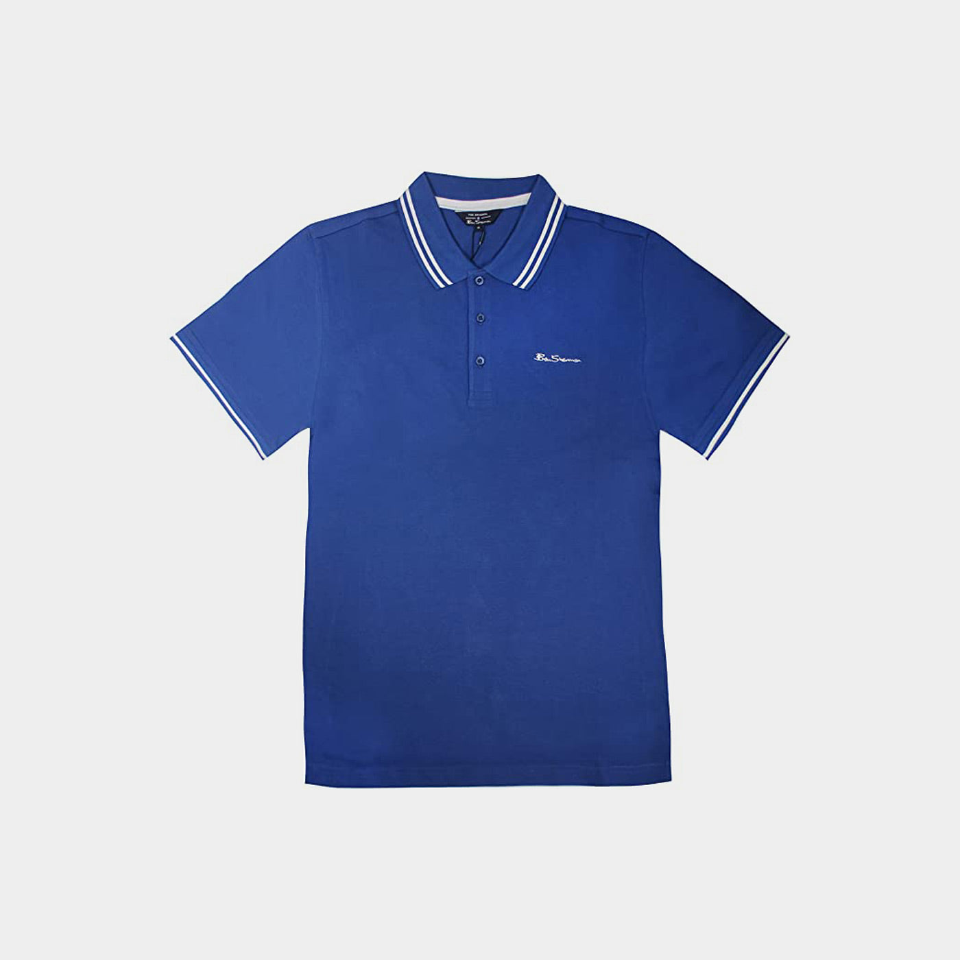 Polo exclusivo es un clásico polo de algodón para hombre con detalles de ribetes en contraste en el cuello y los puños. El polo está confeccionado con algodón orgánico y presenta un cierre de dos botones y un cuello de punto plano.