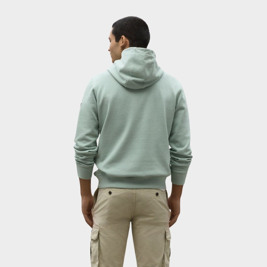 La sudadera Melfort está hecha de 100% algodón reciclado. Este tipo de algodón se obtiene tanto de prendas de ropa usada como de los residuos textiles generados durante la producción.